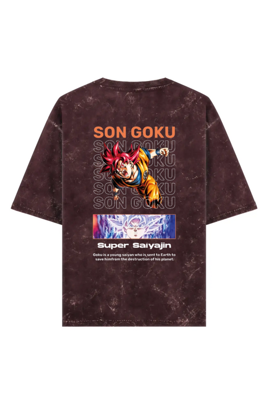 "Saiyan Saiyan – Goku Acid Wash Oversized Power Tee"